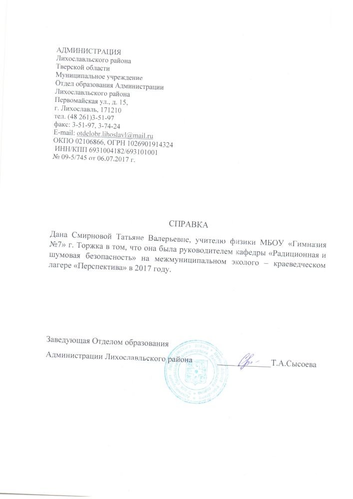 - Грамота Отдела образования администрации города Торжка. Приказ №48 от30.06.2005