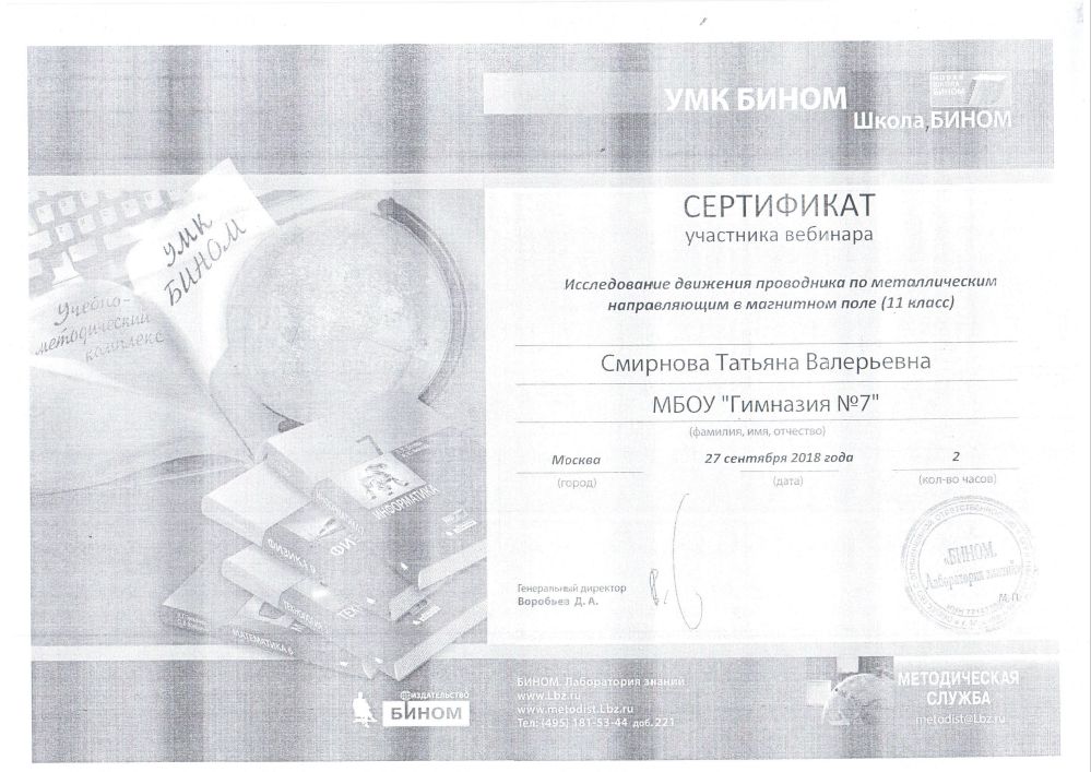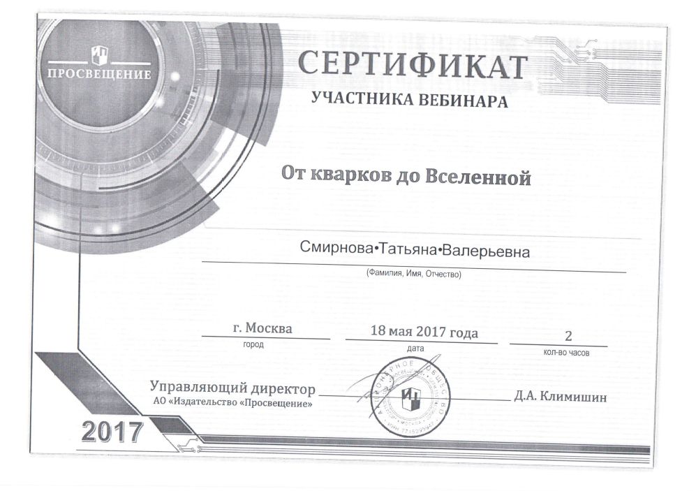 | 2017 | Федеральное государственное бюджетное образовательное учреждение высшего профессионального образования «Московский государственный университет имени М.В. Ломоносова» | Предметная компетентность учителя физики | 36 |