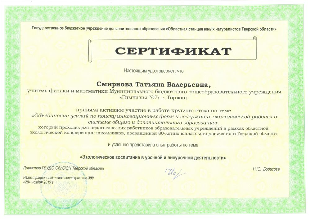 | 2019 | Государственное бюджетное образовательное учреждение дополнительного образования «Тверской областной институт усовершенствования учителей» | Подготовка экспертов для работы в региональных комиссиях при проведении ГИА по общеобразовательной программе основного общего образования. Физика | 18 |