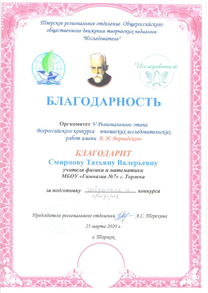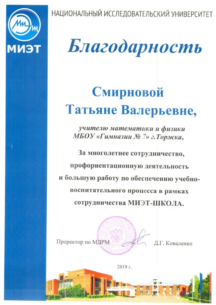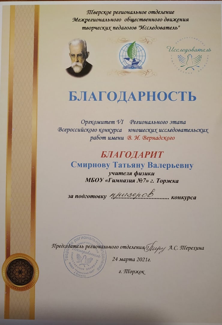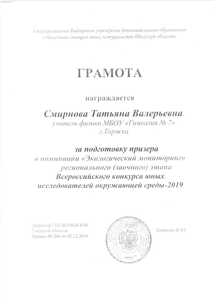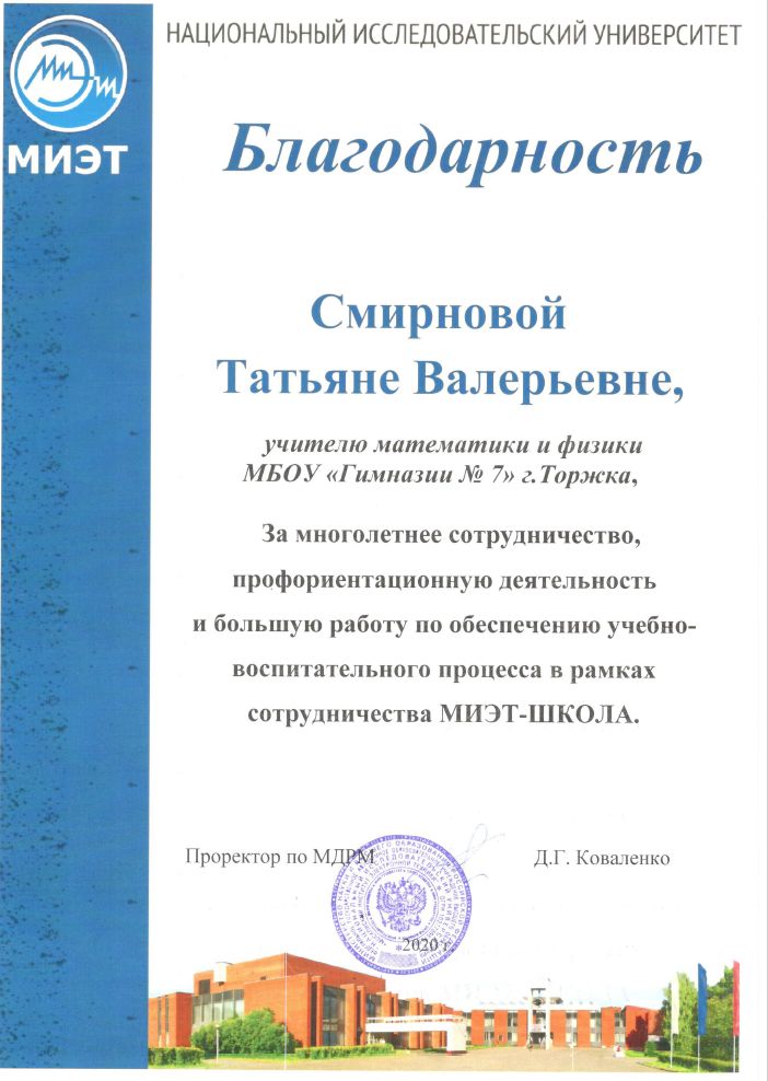 - Благодарственное письмо Управления образования администрации г. Торжка. Приказ № 432 от 24.12.2007 года.